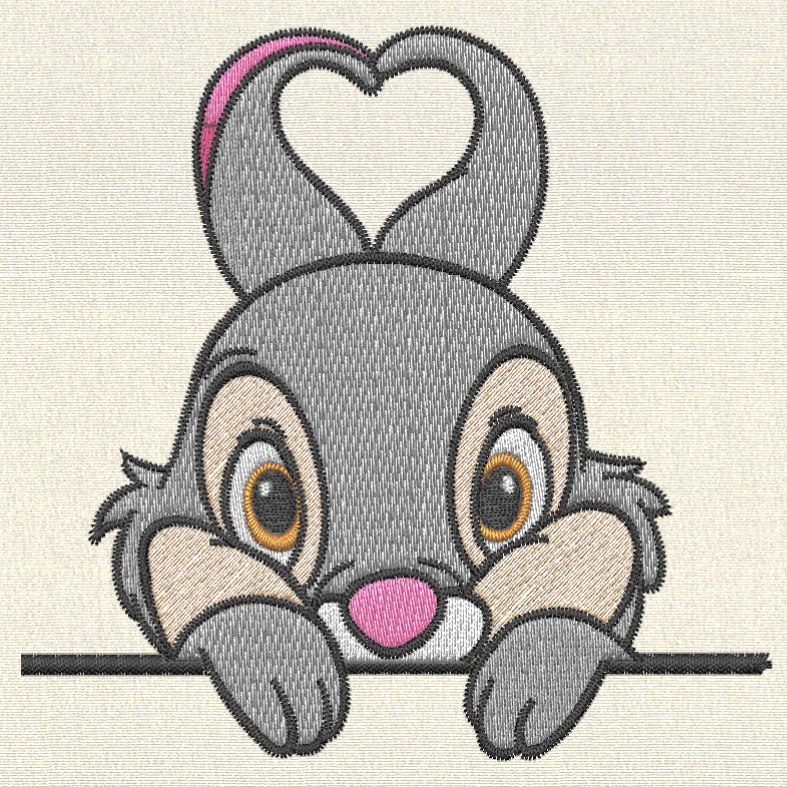 Bring joy to your embroidery projects with this adorable bunny design featuring heart-shaped ears and expressive eyes. Perfect for baby clothing, nursery decor, kids’ accessories, tote bags, or cute handmade gifts.