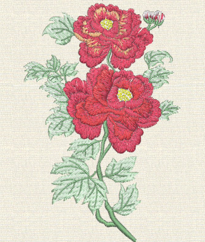 Design Type: Dense satin and fill stitch botanical.